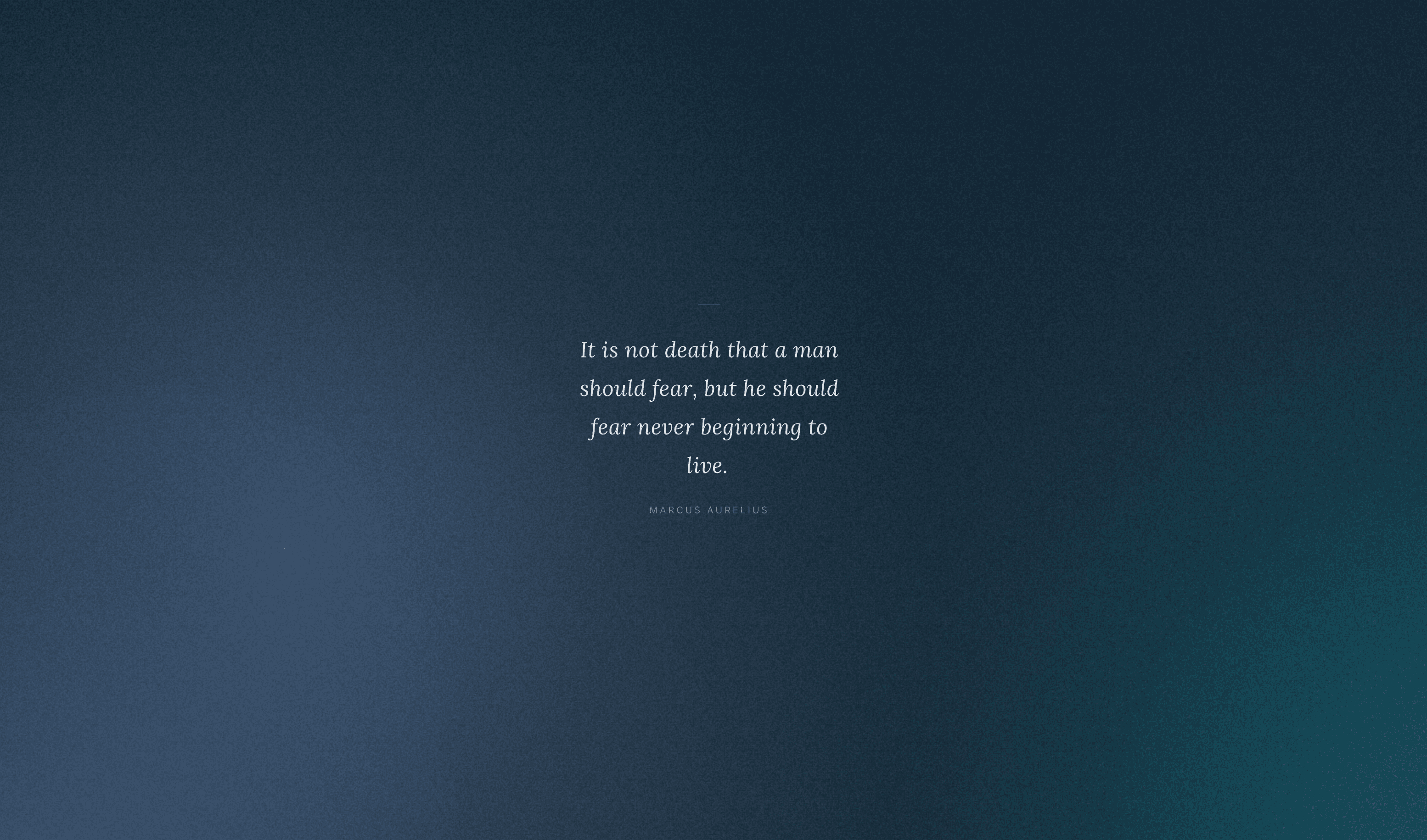 The concept was clear in my head as a designer: dark screen, slow ambient animation, a single sentence that lands. The hard part was making it real without a coding background.