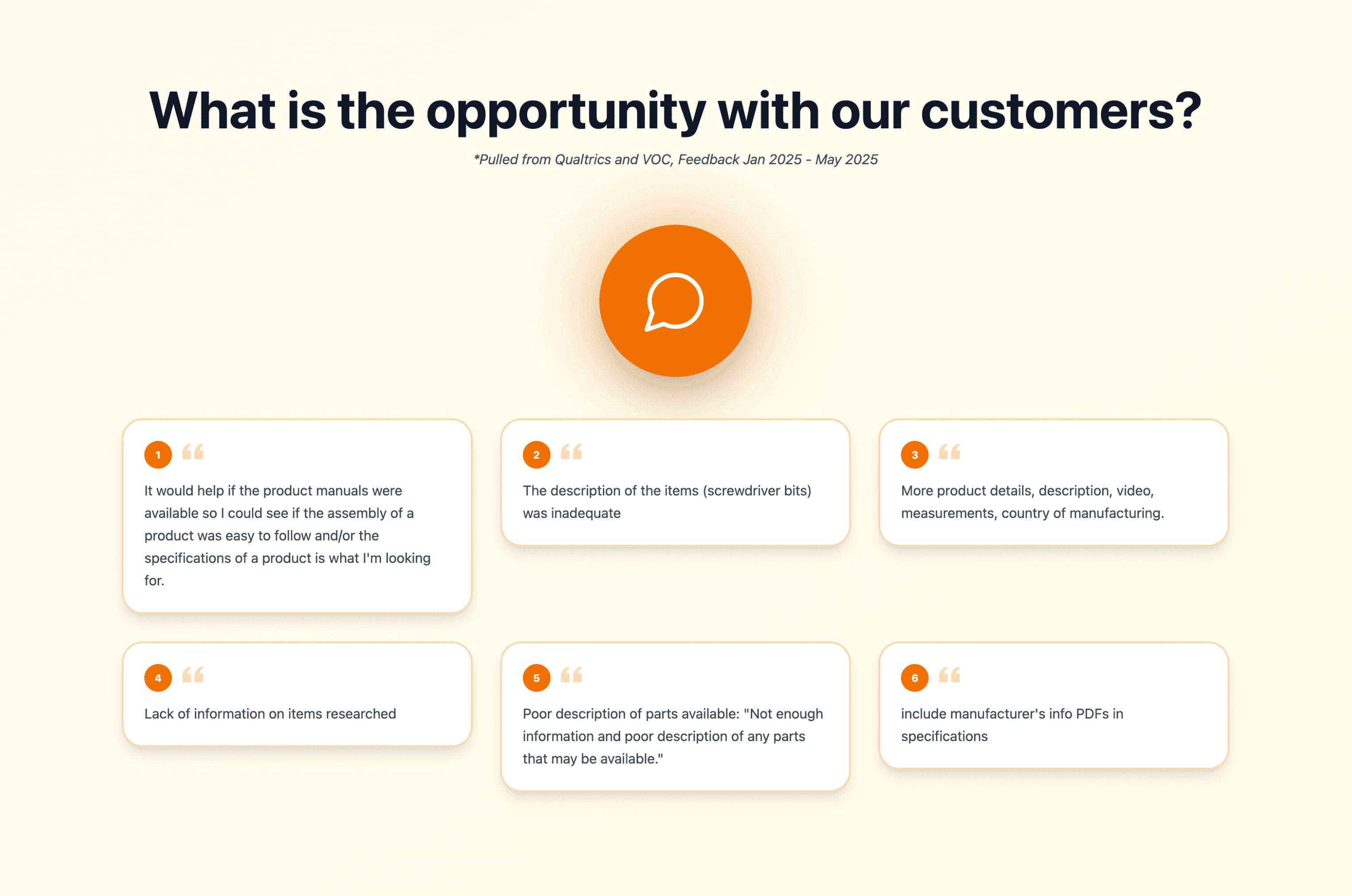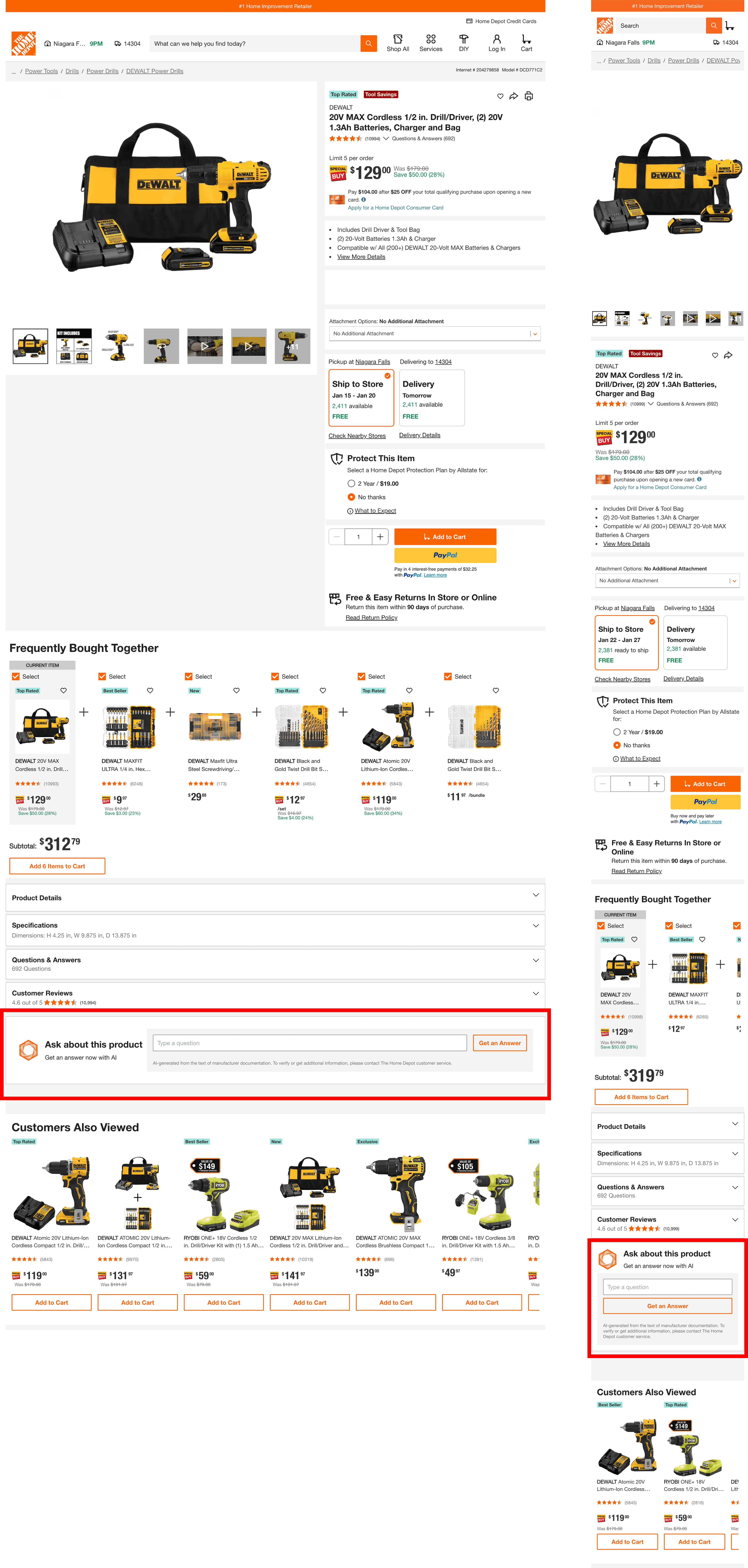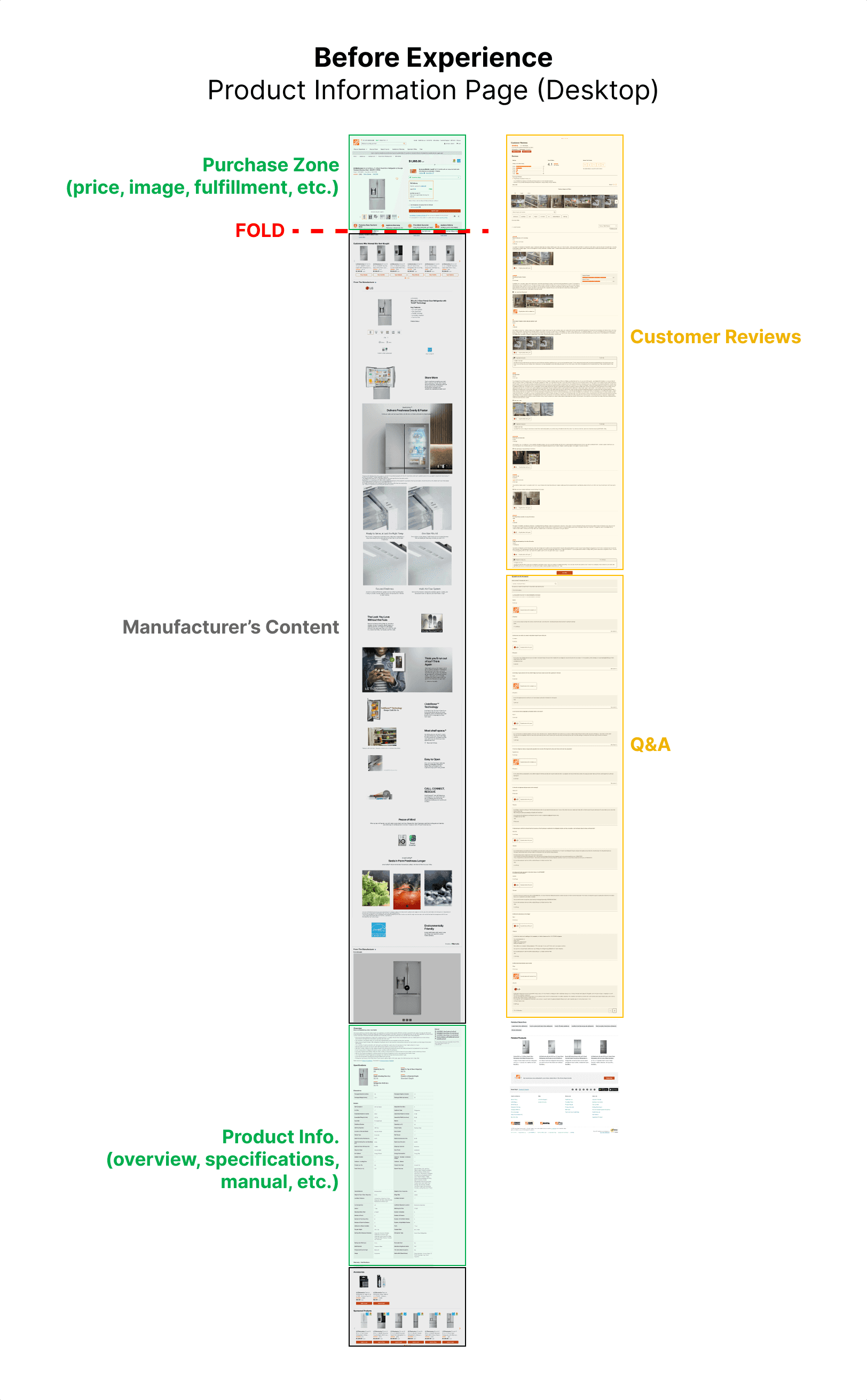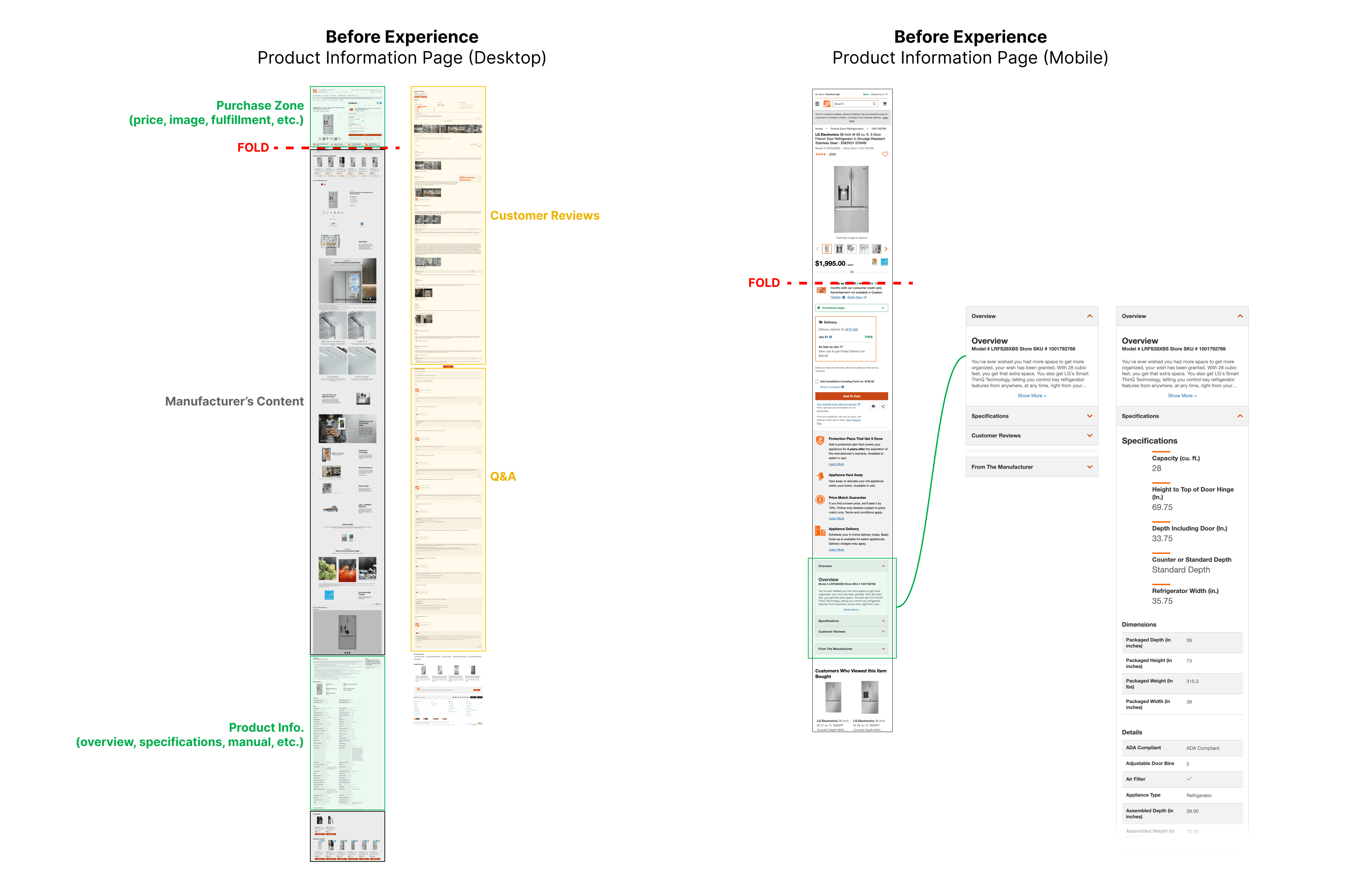 Home Depot customers rely heavily on Product Page to make purchase decisions, yet key details such as specifications, installation info., warranties, availability, and product nuances were buried deep on the page or split across multiple accordion sections.