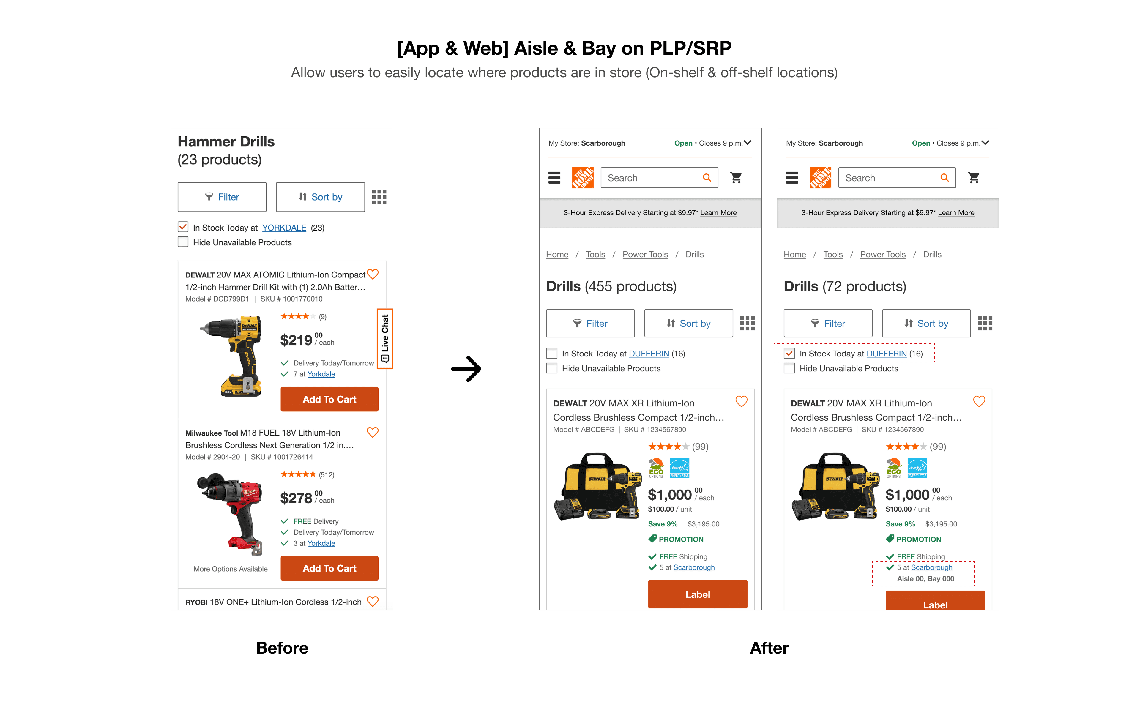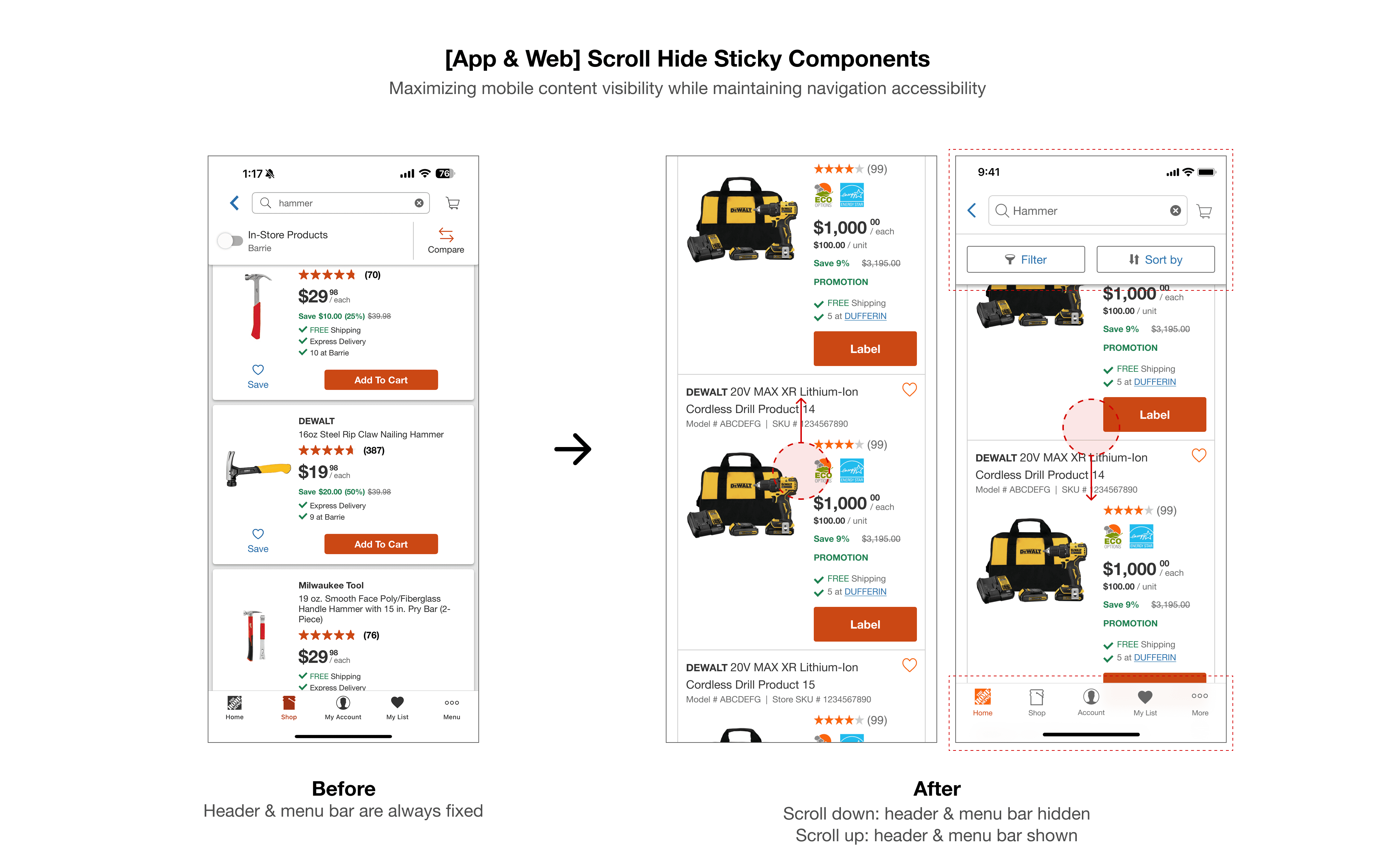 Scroll-responsive UI to preserve navigation without compromising content visibility.Aisle & Bay Info (Web Only)