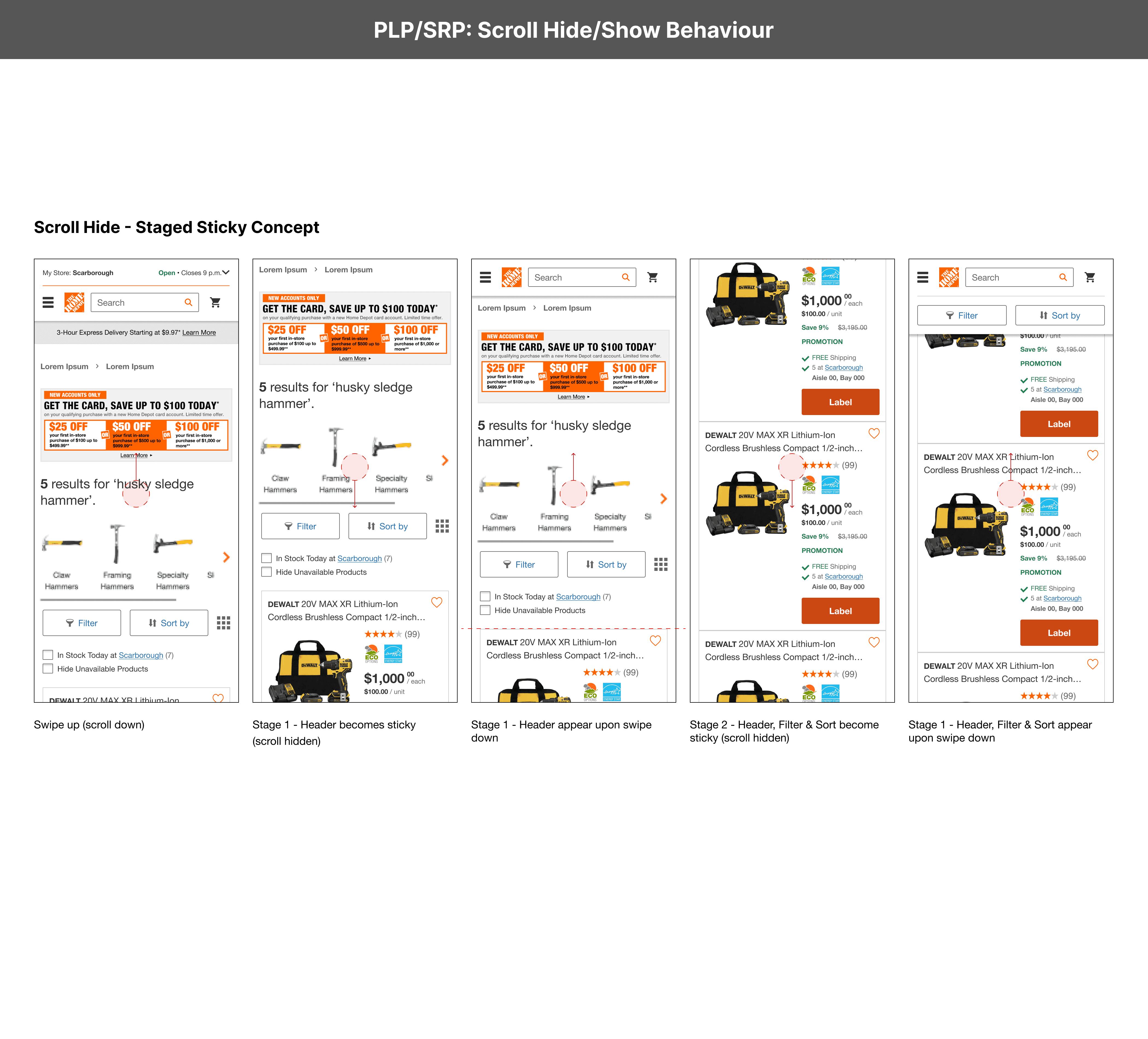 The primary goal of this project was to transition native app experience to WebView-based PIP, PLP, and SRP, unlocking several key web features and continuing the journey toward feature parity between the app and HomeDepot.ca.