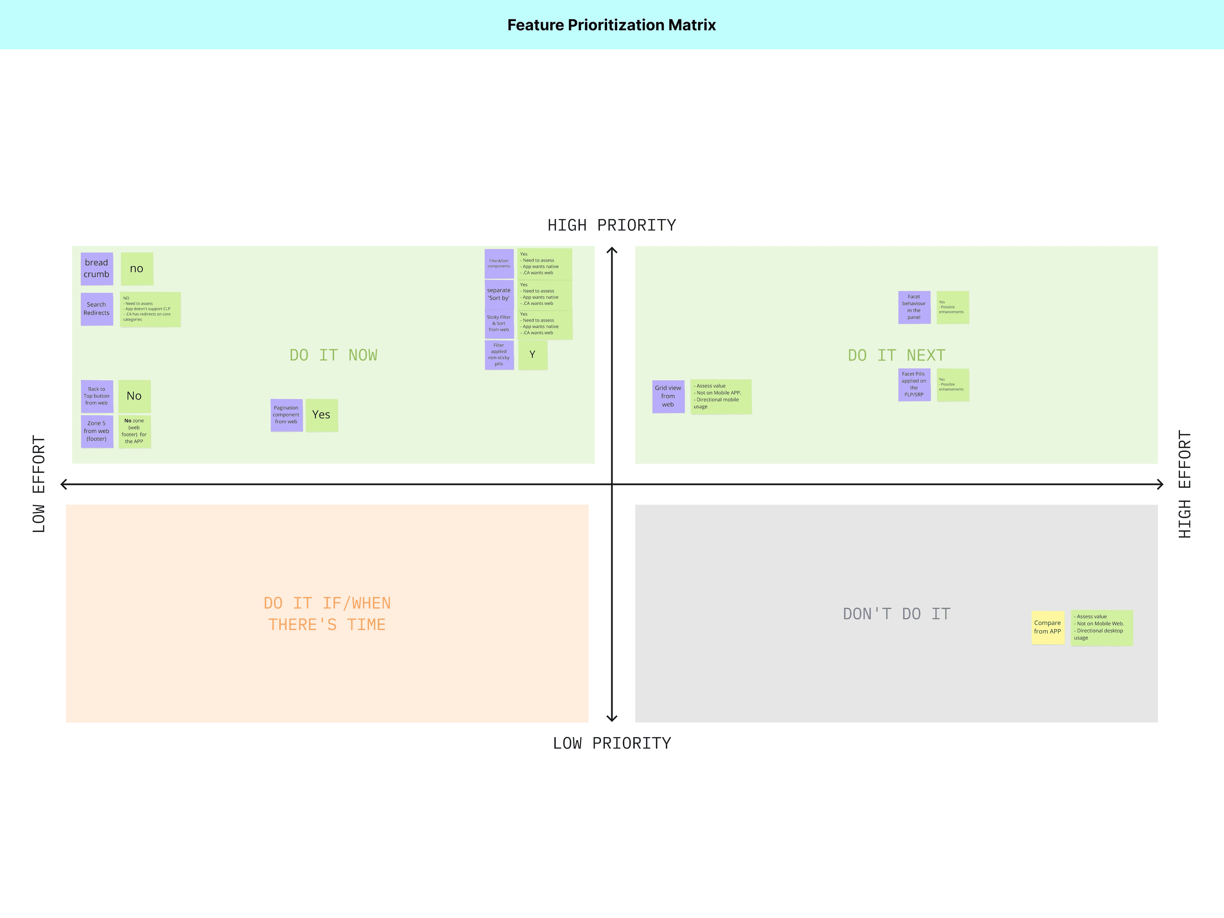 To better understand the scope and align on decisions moving forward, we facilitated a feature prioritization workshop. This activity directly addressed the core challenges of the project: gaining alignment across multiple stakeholders and product teams.