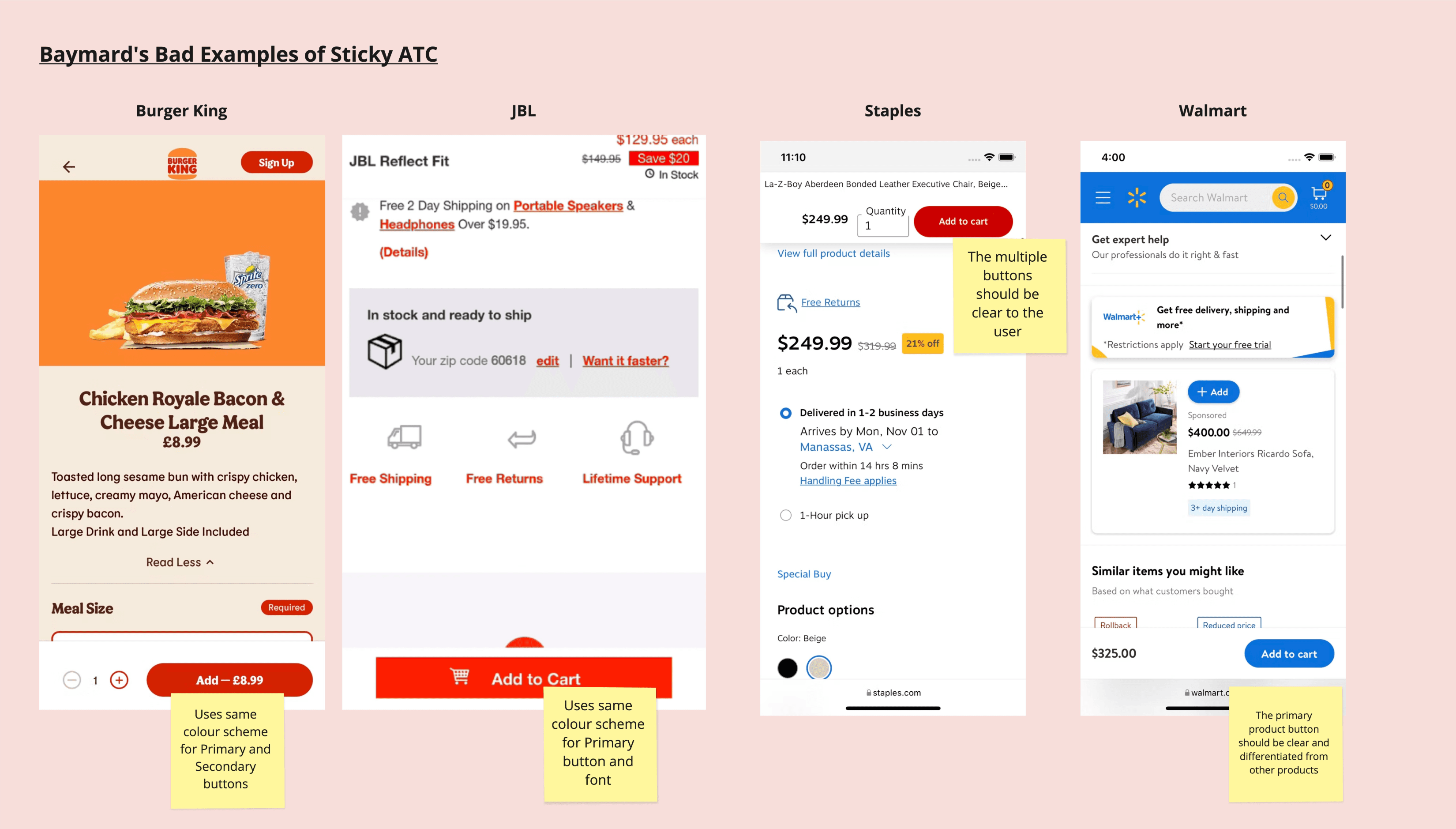 To inform our design decisions and ensure platform-appropriate solutions, we conducted a mix of literature review (Baymard Institute) and internal UX research. This phase focused on identifying best practices for mobile commerce, understanding platform-specific behaviors, and surfacing opportunities to improve key areas of the experience.