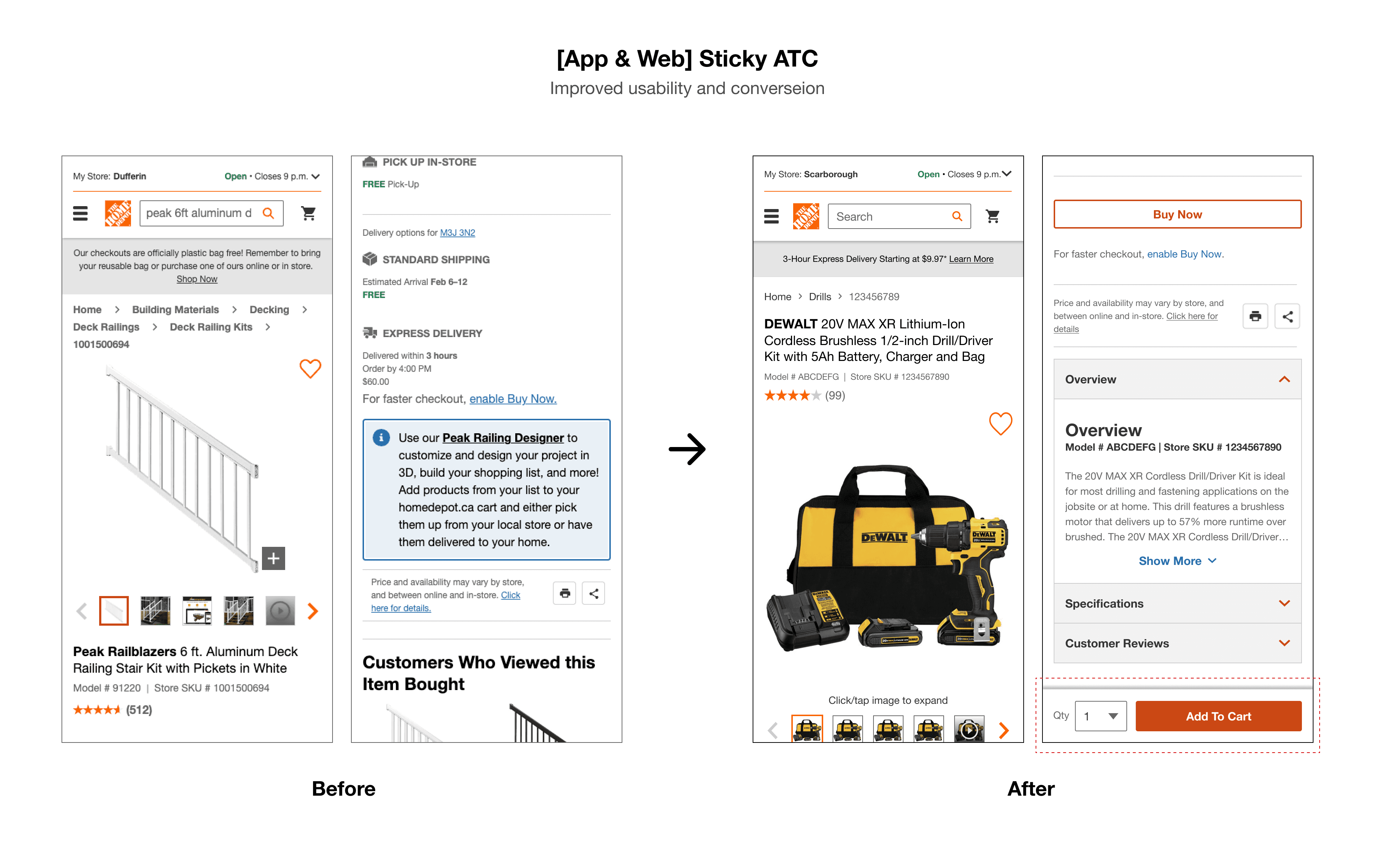 Reworked the structure of Overview, Specs, Reviews, Q&A, and Manufacturer’s Content to improve hierarchy and discoverability.Sticky Add to Cart CTA