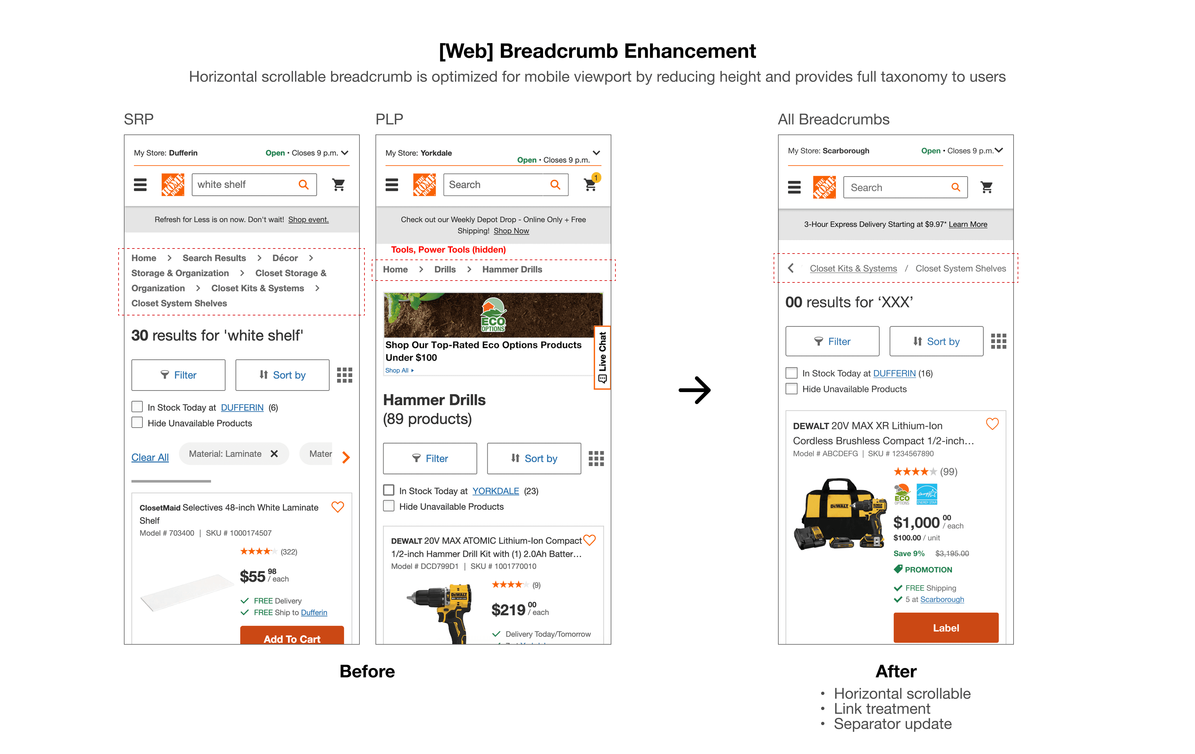 Introduced a visual indicator to help users understand when results were refined.Breadcrumb Enhancements