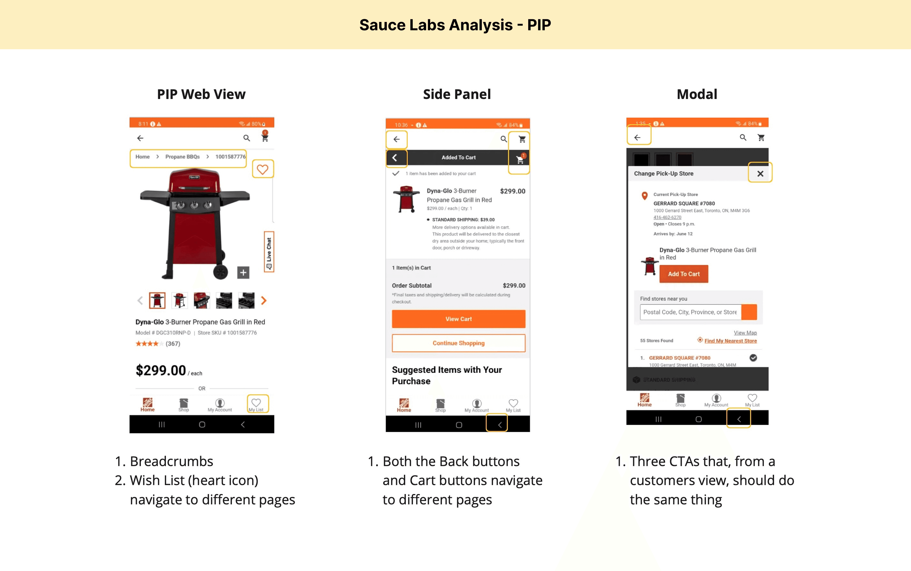 Using Sauce Labs, we embedded the existing HomeDepot.ca web experience into the native app without making any changes to the content. This allowed us to preview how the WebView would behave in context and identify potential issues early, such as layout inconsistencies, interaction conflicts, and performance/usability concerns.