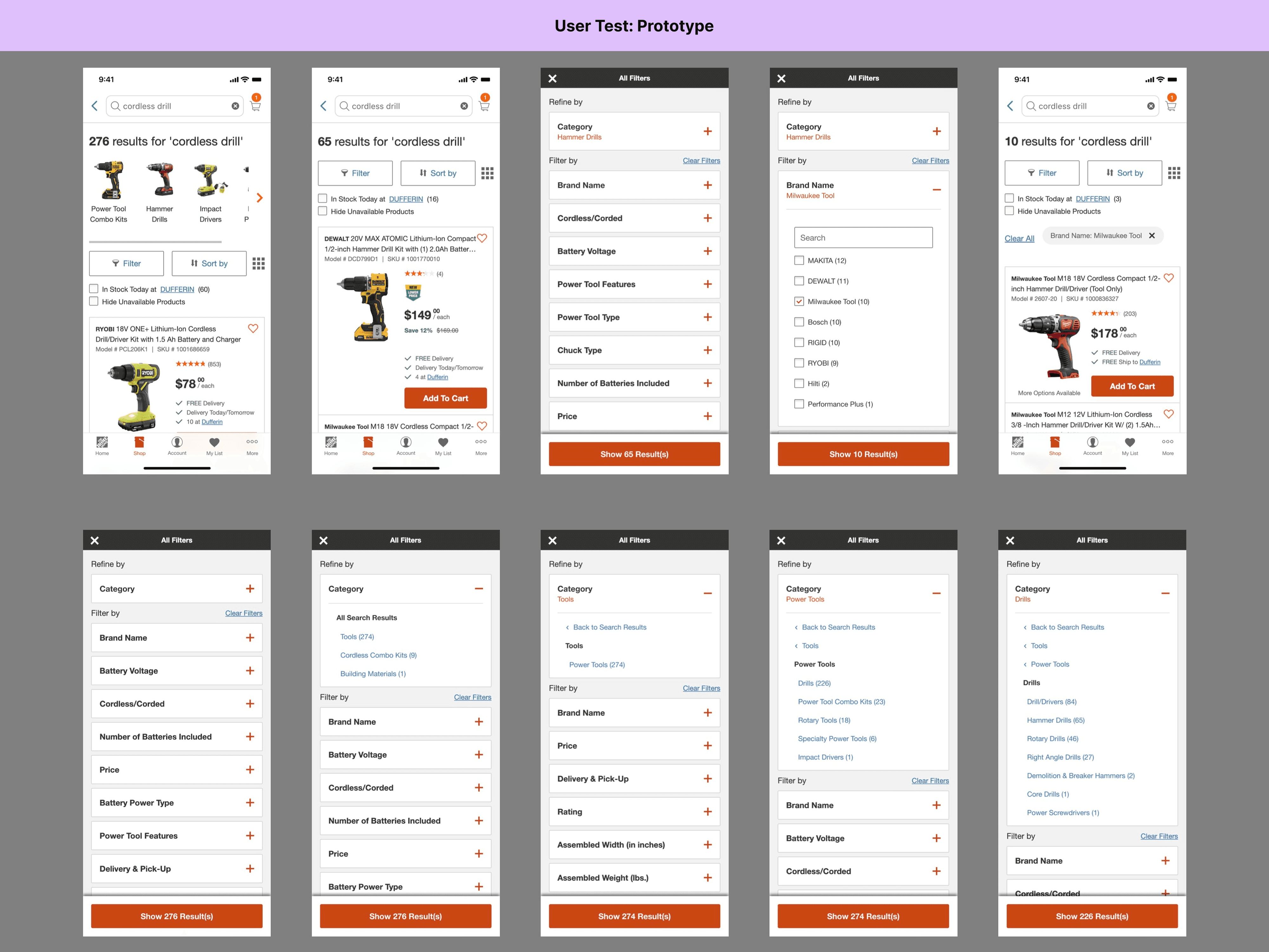 Due to concerns from senior leadership around navigation patterns, the PLP/SRP webview project involved multiple rounds of testing:
